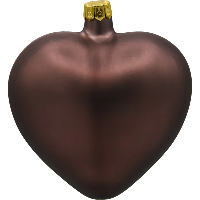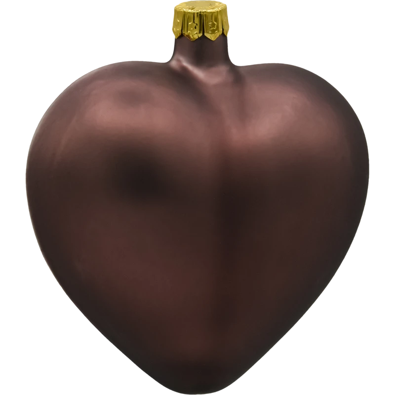 Szklana bombka serce matowa czekoladowa – ręcznie wykonana bombka choinkowa ze szkła w eleganckim brązowym kolorze. Idealna do nowoczesnych dekoracji świątecznych.