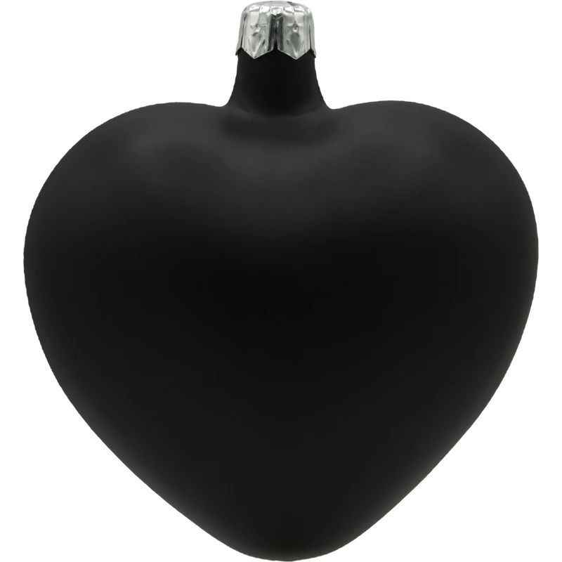 Czarna bombka serce z matowego szkła – nowoczesna ozdoba choinkowa o eleganckim, głębokim kolorze. Idealna do stylowych i odważnych dekoracji świątecznych.