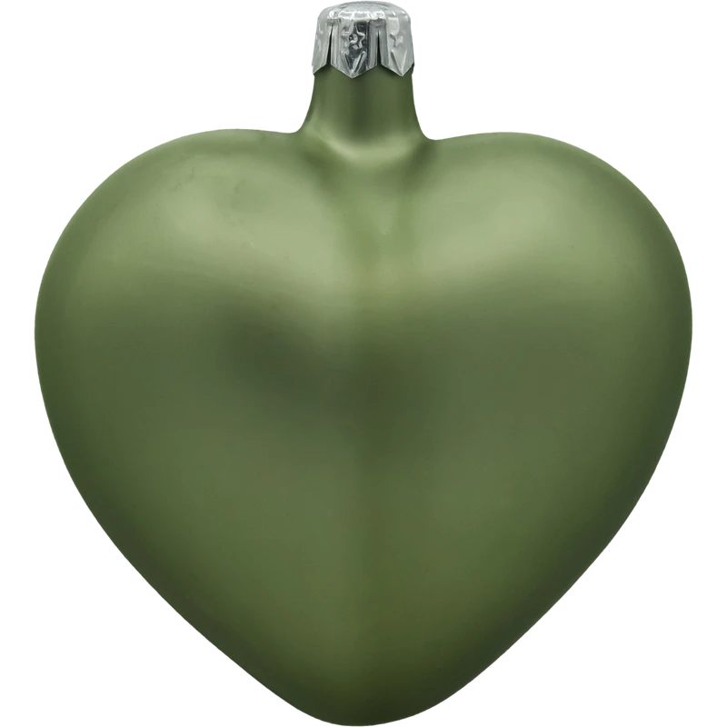 Szklana bombka w kształcie serca w matowym, oliwkowym odcieniu to subtelna, a zarazem nietuzinkowa ozdoba choinkowa dla miłośników naturalnych barw i stonowanej elegancji. Delikatny połysk satynowego szkła nadaje jej wyjątkowego uroku, a oryginalny kolor pięknie komponuje się z dekoracjami w stylu rustykalnym, boho czy skandynawskim.