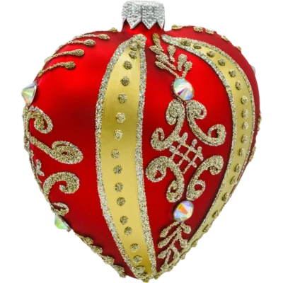 Ręcznie wykonana bombka w kształcie serca to symbol miłości, bliskości i rodzinnego ciepła. Idealnie wpisuje się w stylistykę romantyczną, glamour oraz klasyczną. Sprawdzi się zarówno jako ozdoba na choince, jak i element świątecznego stroika czy oryginalny dodatek do prezentu.