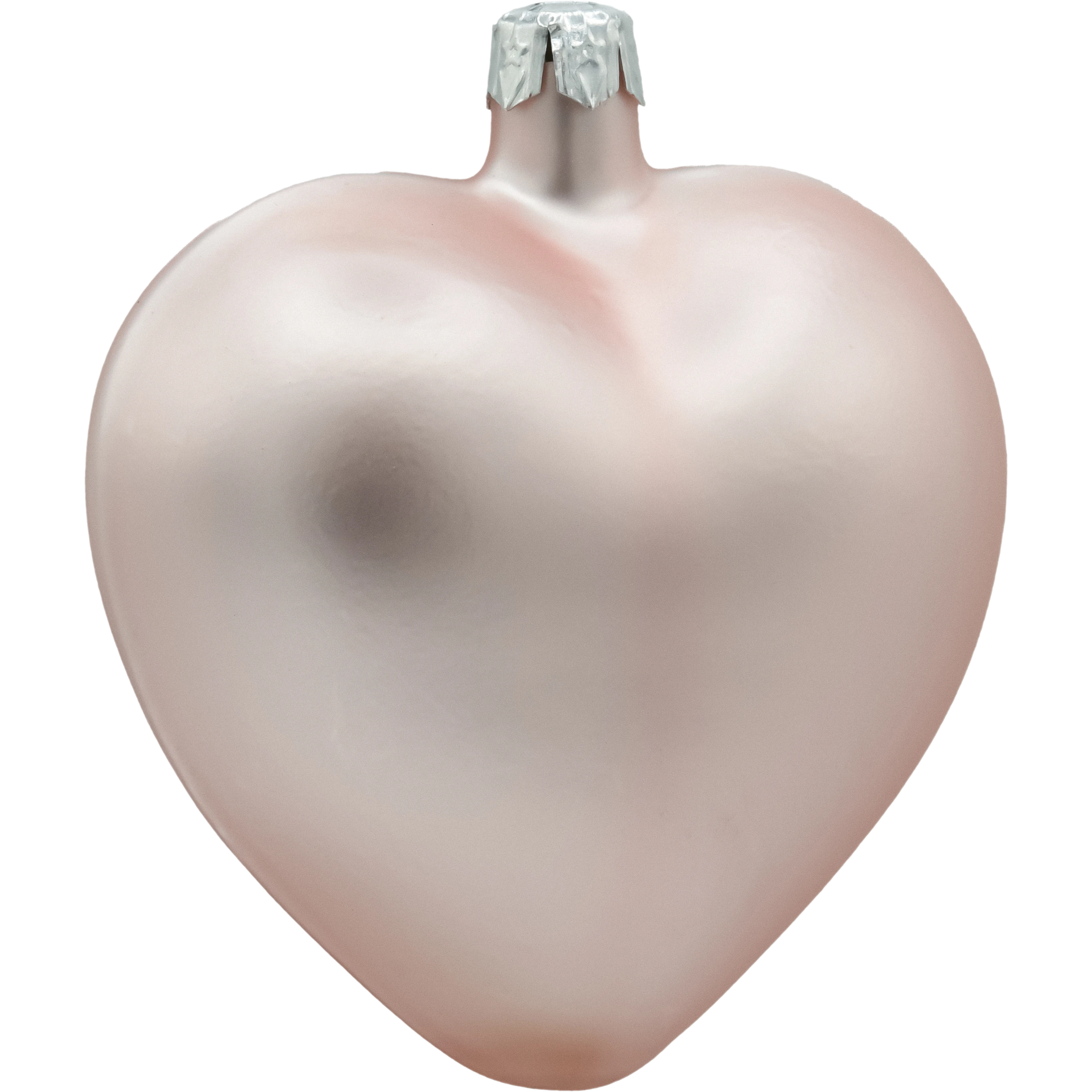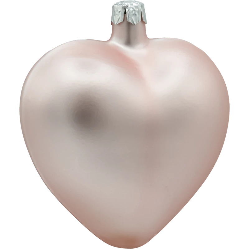 Szklana bombka serce w kolorze pudrowego różu – elegancka, matowa ozdoba choinkowa idealna do romantycznych i nowoczesnych aranżacji świątecznych.