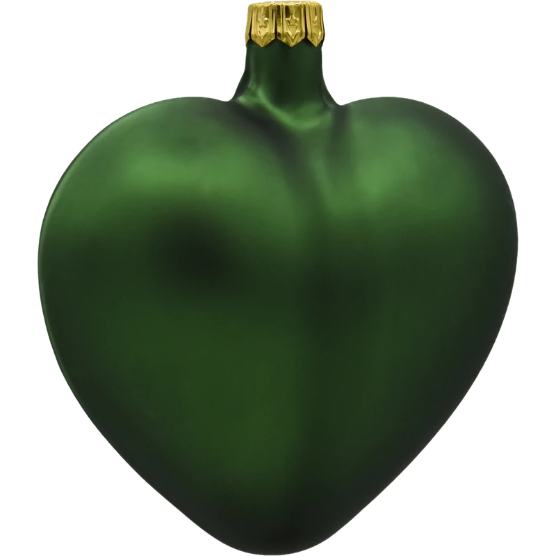 Zielona szklana bombka serce – elegancka i matowa ozdoba choinkowa w klasycznym kształcie. Idealna do stylowych dekoracji świątecznych. Ręcznie wykonana.