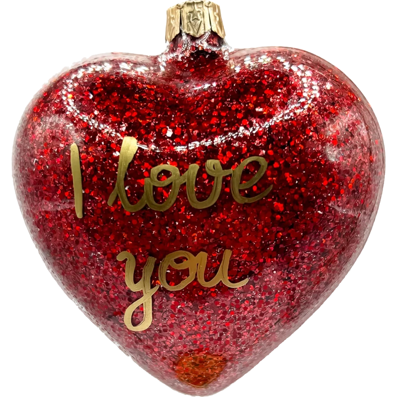 Szklana bombka choinkowa w kształcie serca z napisem „I love you” to romantyczna i elegancka ozdoba, która wprowadzi na choinkę wyjątkowy, uczuciowy akcent. Błyszczący czerwony brokat i złoty napis czynią ją idealnym prezentem dla bliskiej osoby lub pięknym dodatkiem, który wzbogaci świąteczne dekoracje.
