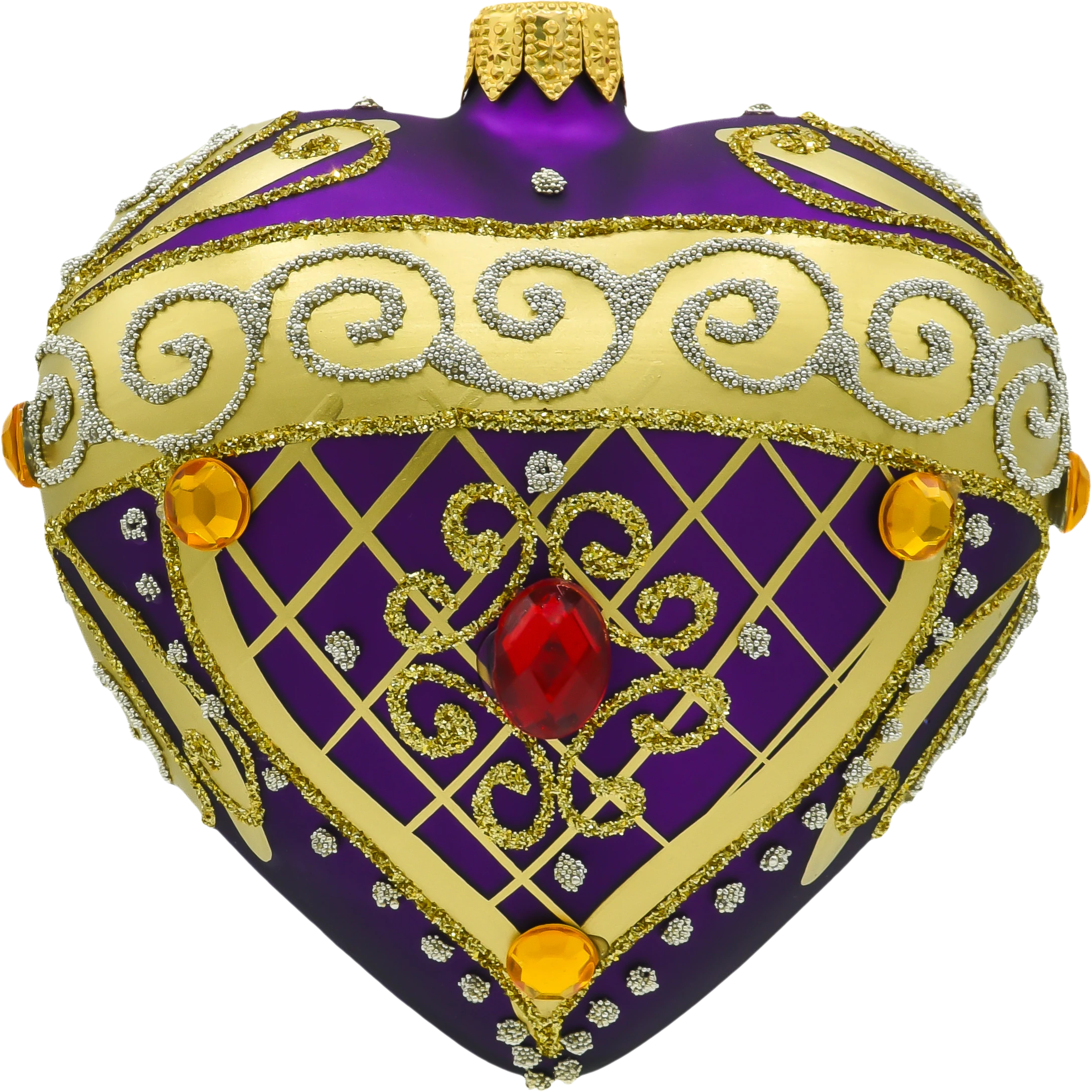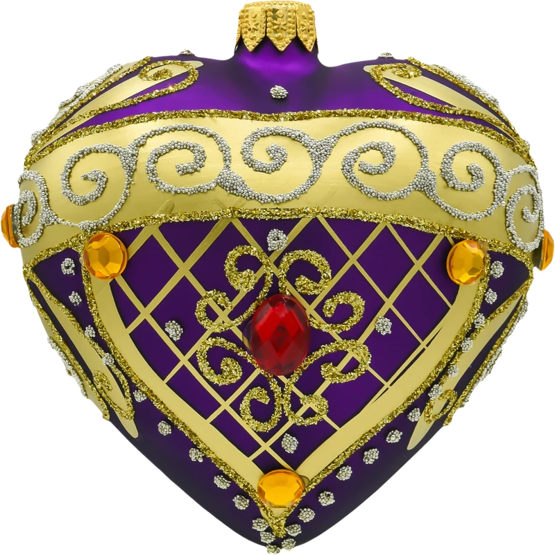 Serce ze złotymi zdobieniami i kamieniami: purpurowe