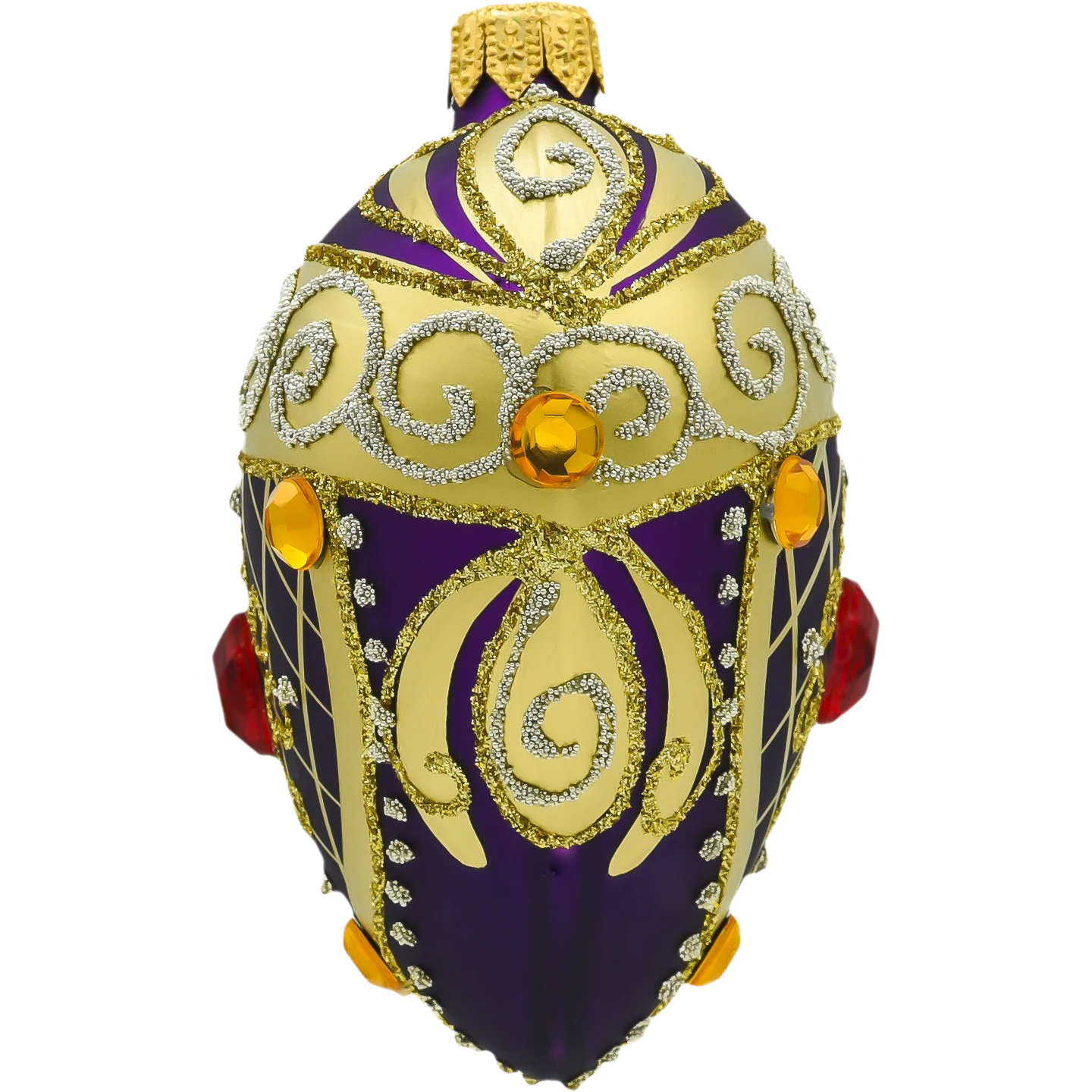 Bogate złote ornamenty – zdobienia w stylu barokowym, które dodają bombce królewskiego blasku i wyjątkowego stylu.