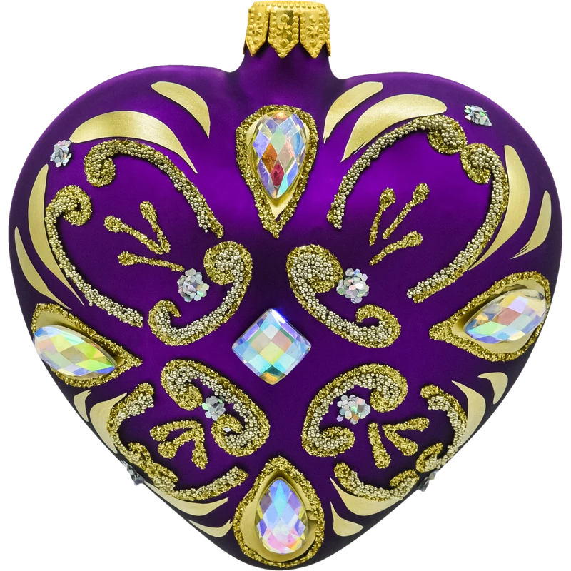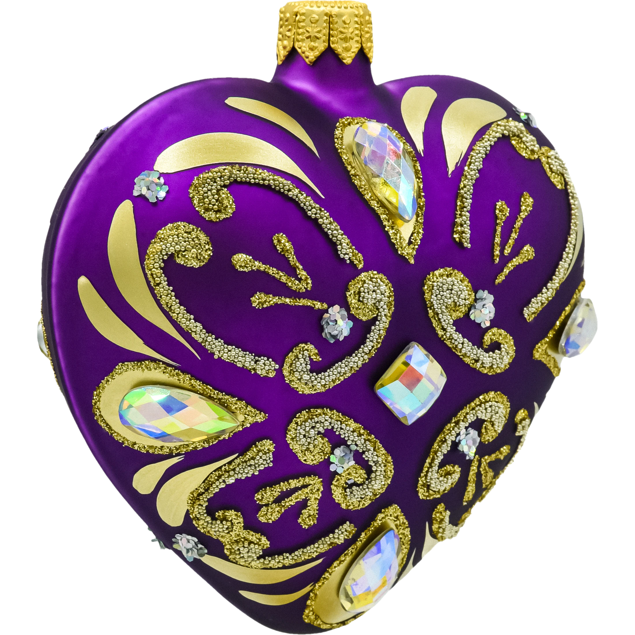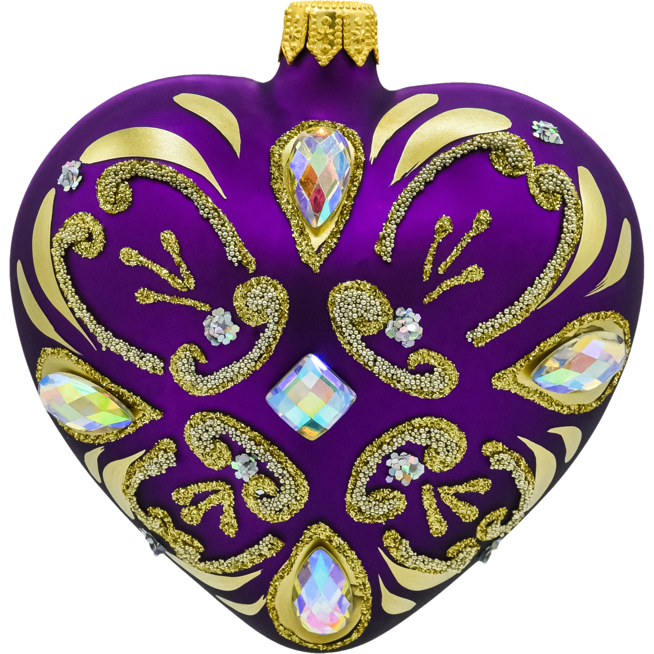 Serce ze złotymi zdobieniami i kryształami: purpurowe
