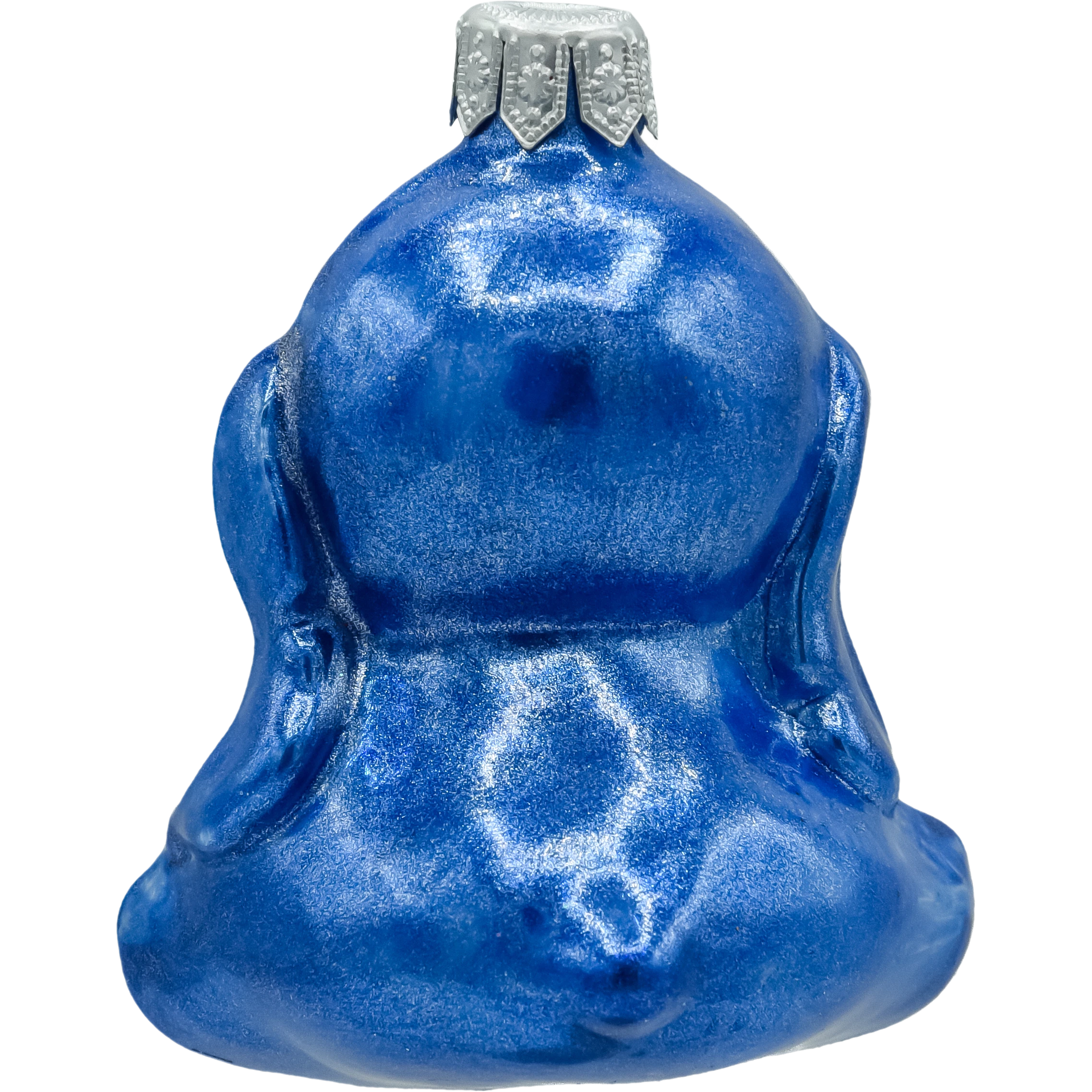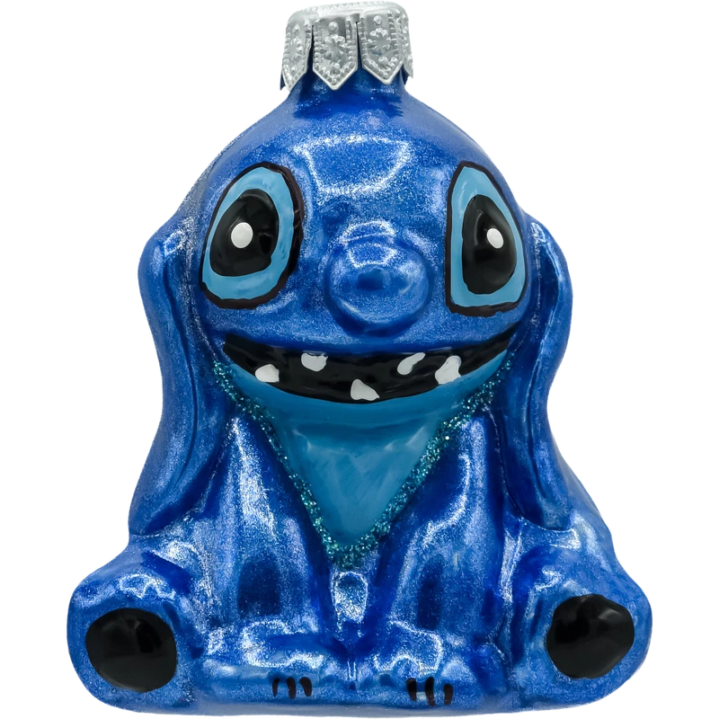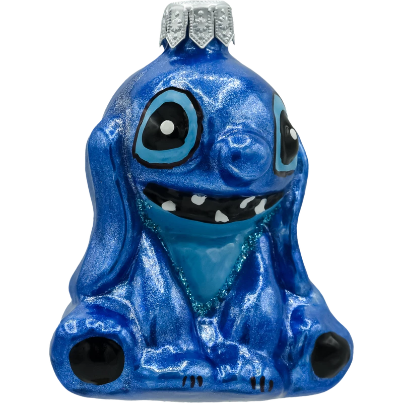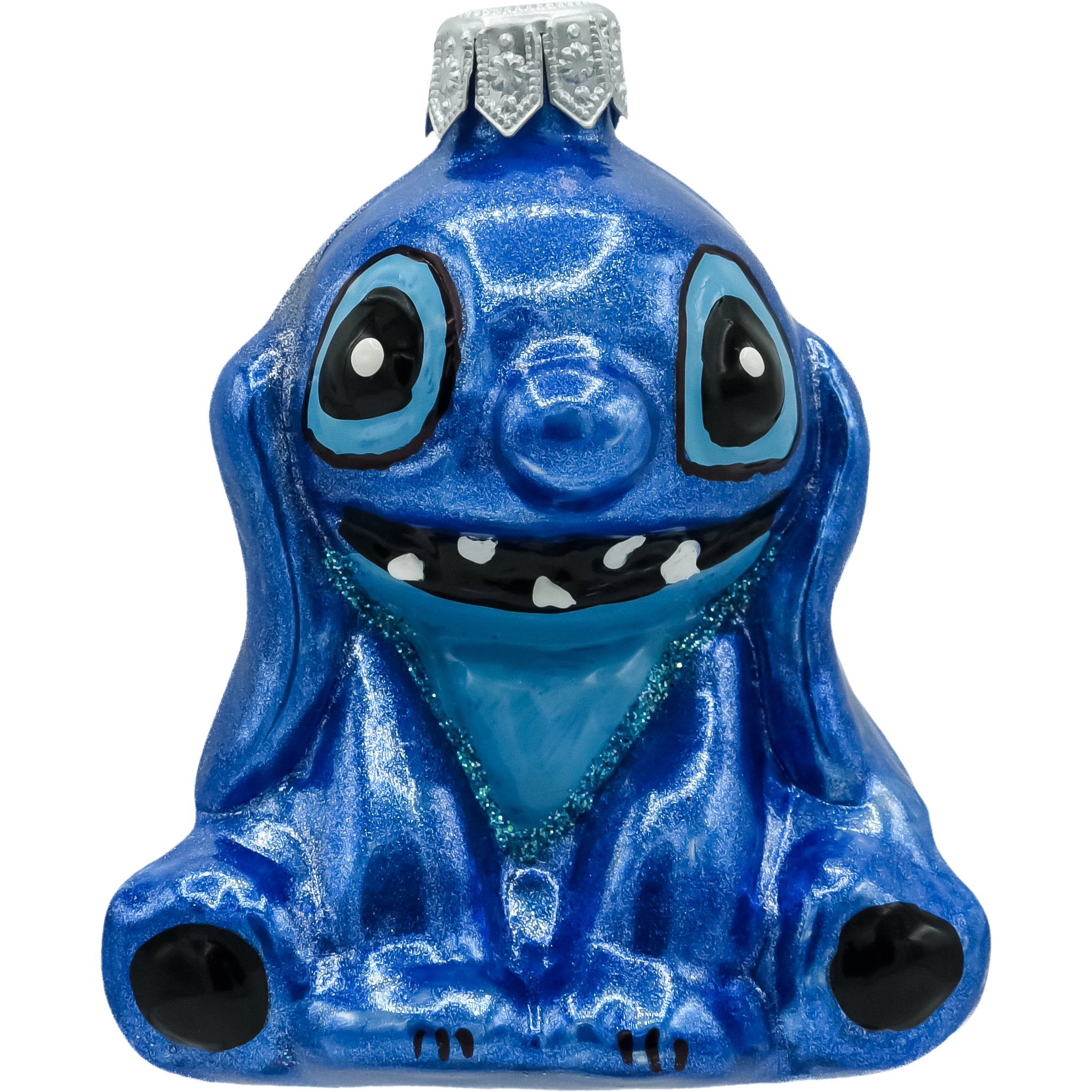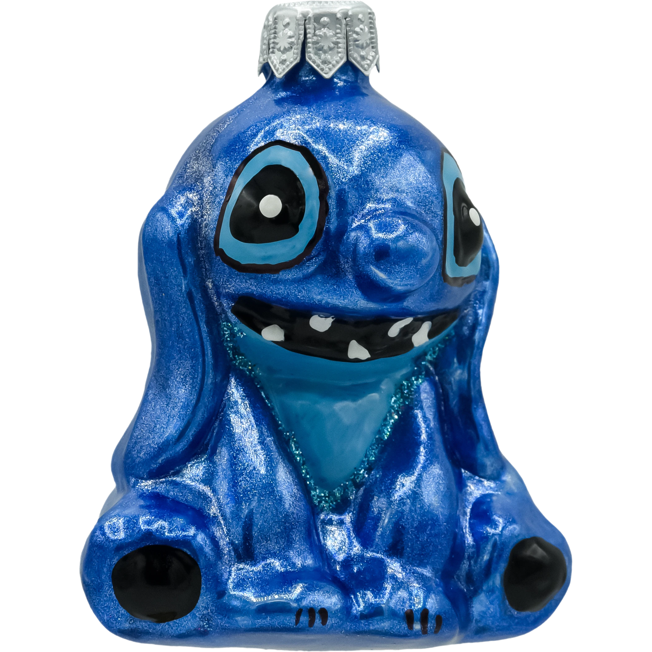 Ręcznie malowana szklana bombka w kształcie niebieskiego bajkowego stworka – idealna na choinkę, prezent lub do kolekcji. Wyjątkowa dekoracja dla fanów animacji i świątecznego humoru.