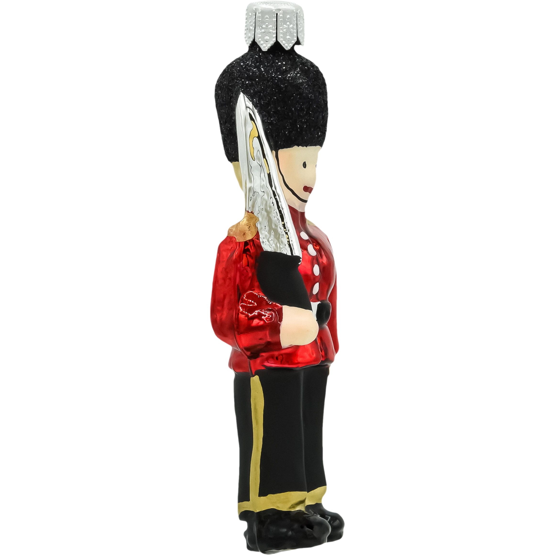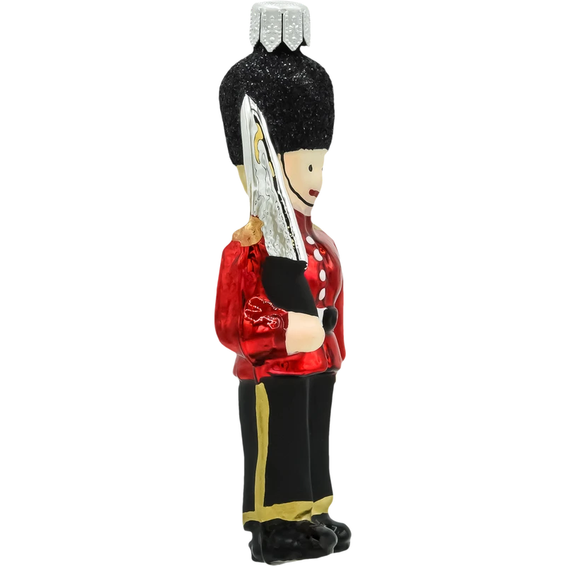 Ozdoba zachwyca precyzją wykonania i starannością w odwzorowaniu detali – od brokatowego pasa po guziki munduru. Kolory są intensywne, a powierzchnia błyszcząca, dzięki czemu bombka pięknie odbija światło choinkowych lampek. Każdy egzemplarz to ręczna praca, co sprawia, że każdy strażnik jest niepowtarzalny. Idealna jako prezent dla miłośników Wielkiej Brytanii, angielskiej kultury lub kolekcjonerów unikalnych ozdób choinkowych.