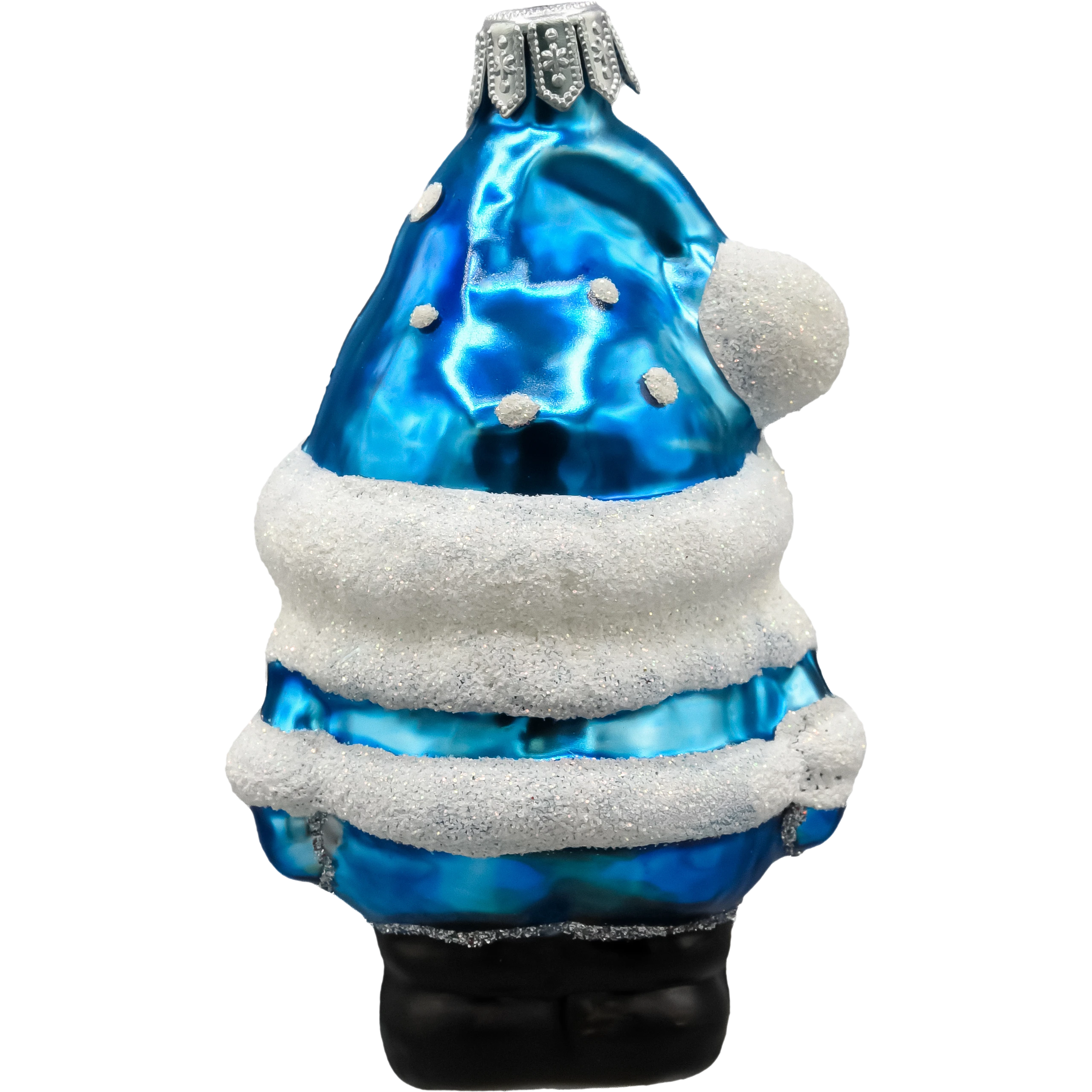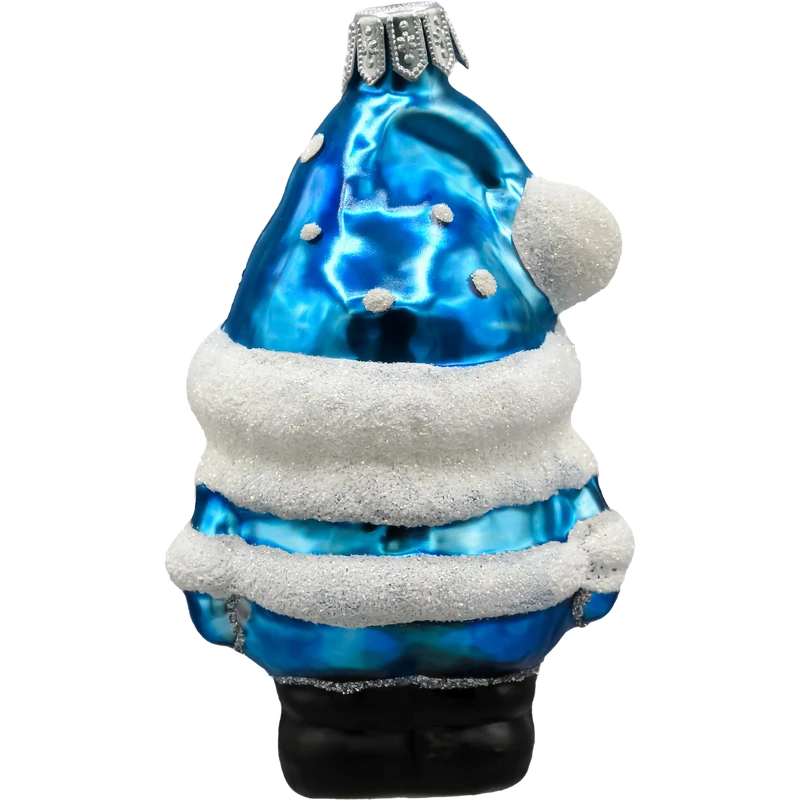 Szklana bombka w kształcie uroczego Skrzata Mikołaja w niecodziennej wersji kolorystycznej – w błyszczącym, lazurowoniebieskim stroju – to prawdziwy klejnot wśród ozdób choinkowych. Bombka została wykonana ręcznie z najwyższej jakości szkła i pokryta mieniącym się brokatem, który pięknie odbija światło choinkowych lampek.