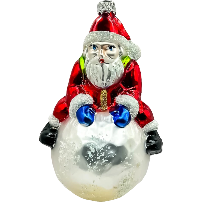 Wprowadź świąteczny klimat do swojego domu dzięki tej uroczej bombce przedstawiającej Świętego Mikołaja siedzącego na śnieżnej kuli. Wykonana z wysokiej jakości szkła i ręcznie malowana, bombka zachwyca starannie dopracowanymi detalami – czerwony strój Mikołaja ozdobiony jest brokatem, który pięknie mieni się w świetle choinkowych lampek, a biała kula przypomina prawdziwy śnieg. Ta nietuzinkowa ozdoba doskonale sprawdzi się na choince, dodając jej radości i klasycznego bożonarodzeniowego charakteru.