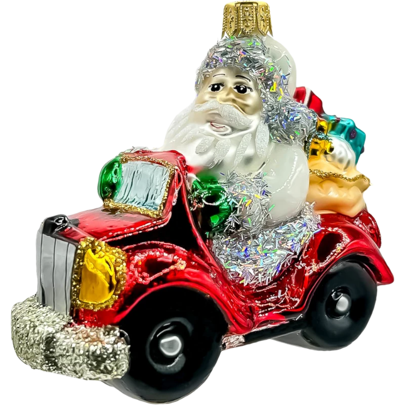 Bombka „Święty Mikołaj w czerwonym samochodzie” to wyjątkowa ozdoba, która wniesie do Twojego domu radość i uśmiech, przypominając o magii świąt. Idealna jako prezent lub jako element kolekcji świątecznych dekoracji, stanie się niezapomnianym elementem świątecznych tradycji, wywołując uśmiech każdego roku.