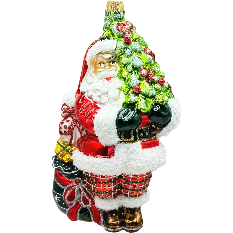 Świąteczny design: Święty Mikołaj z choinką to klasyczny symbol świąt, który idealnie komponuje się z bożonarodzeniowymi dekoracjami w każdym stylu.