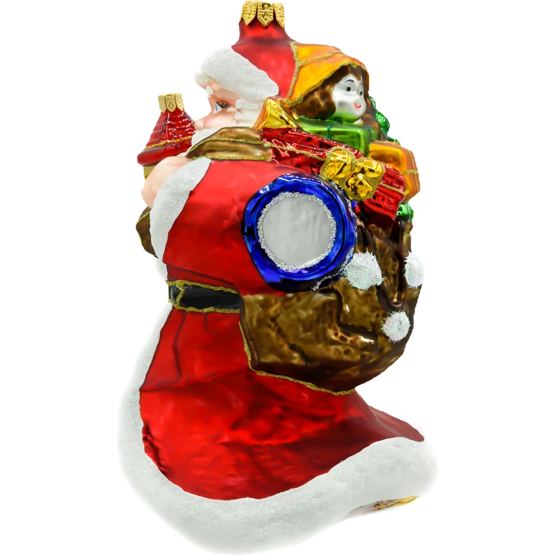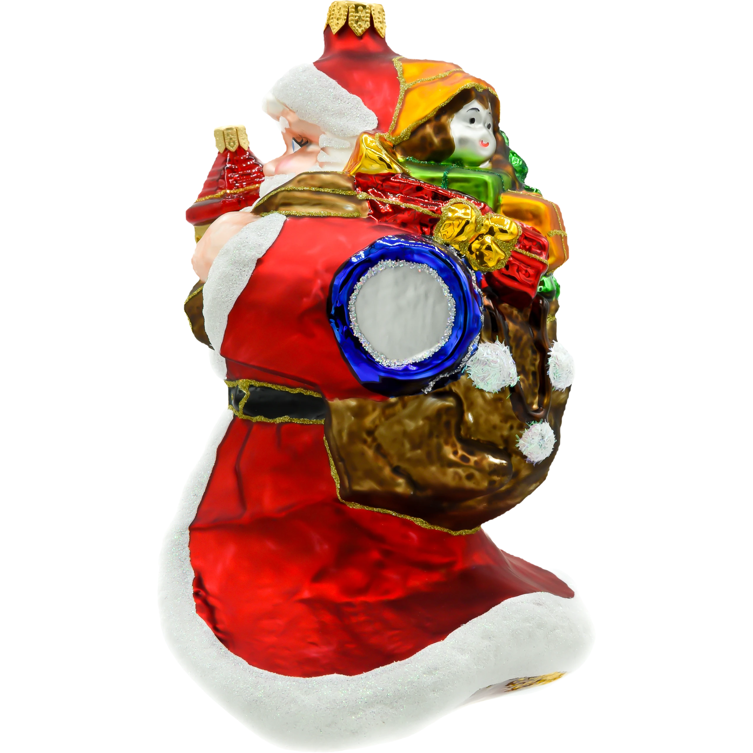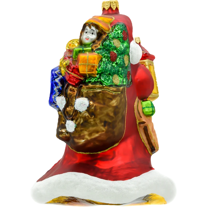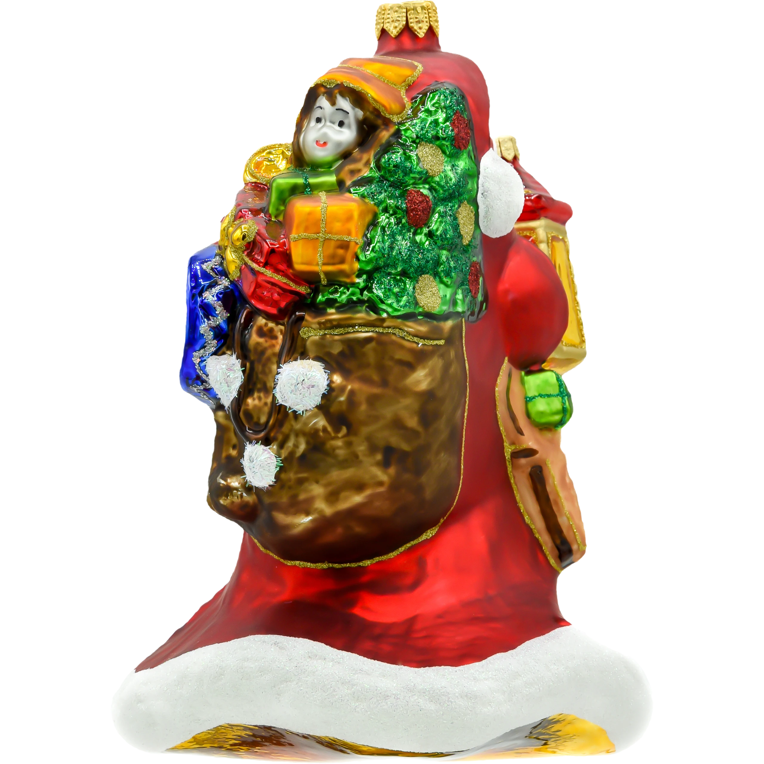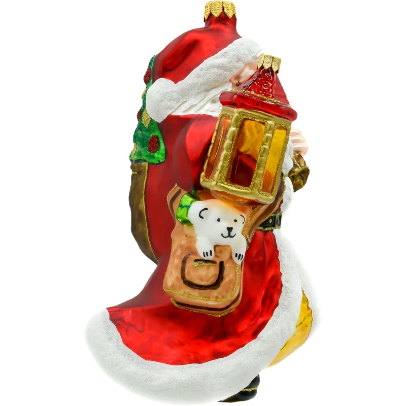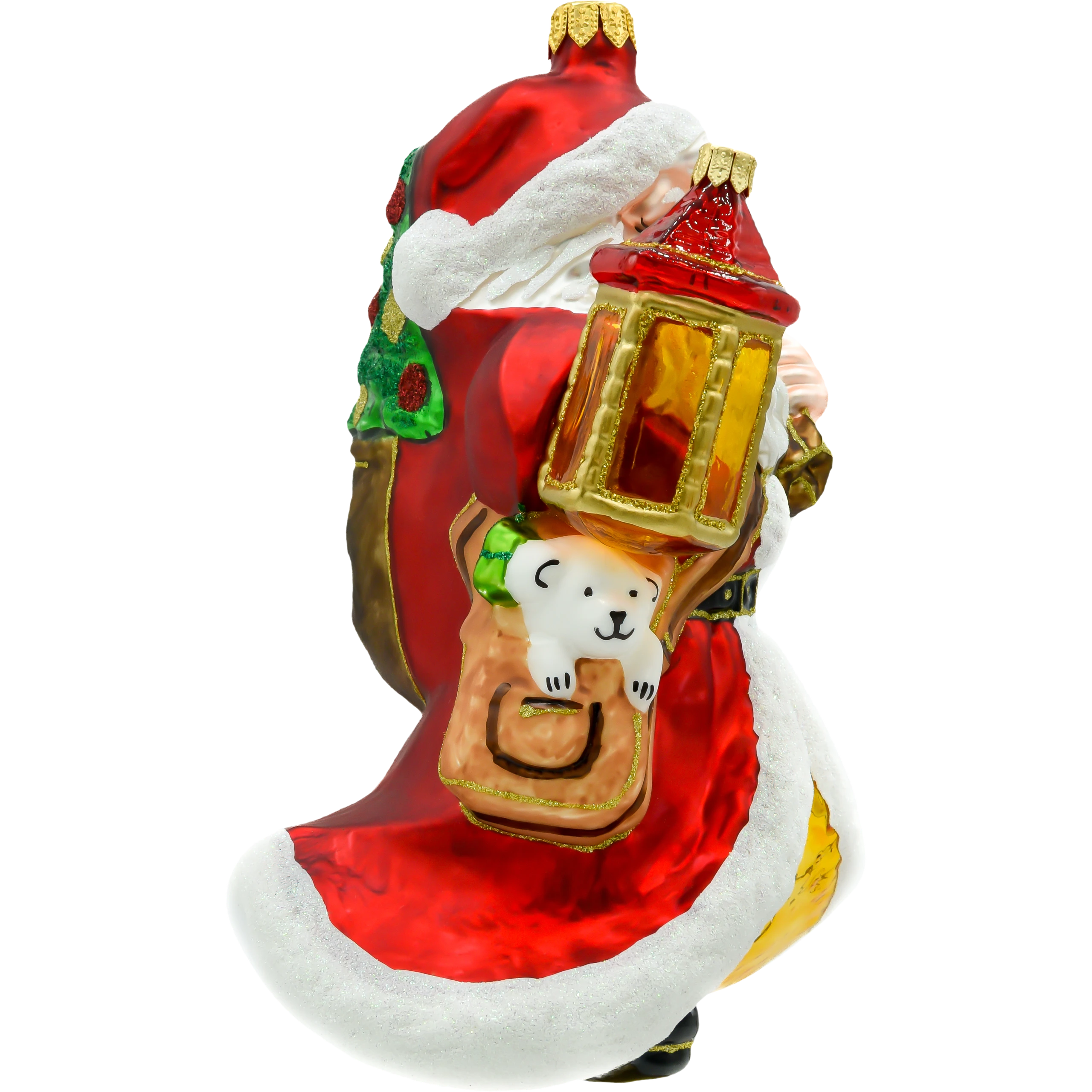 Rozświetl swoją choinkę za pomocą wyjątkowej, ręcznie malowanej szklanej bombki „Święty Mikołaj z Lampionem”. Ta piękna ozdoba przedstawia Świętego Mikołaja w klasycznej czerwonej szacie, trzymającego złoty lampion, który dodaje ciepłego blasku i przytulności każdemu wnętrzu. W drugim ręku Mikołaj niesie worek pełen prezentów, co symbolizuje radość i hojność świąt Bożego Narodzenia.