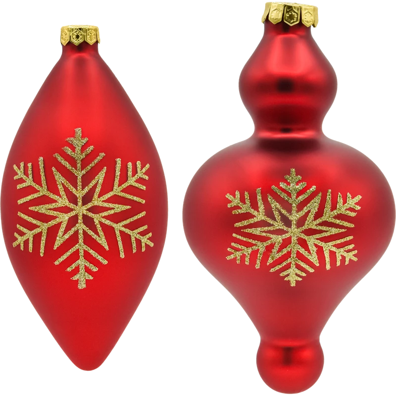 • Motyw: złote płatki śniegu na czerwonych elementach podkreślają świąteczny charakter dekoracji.