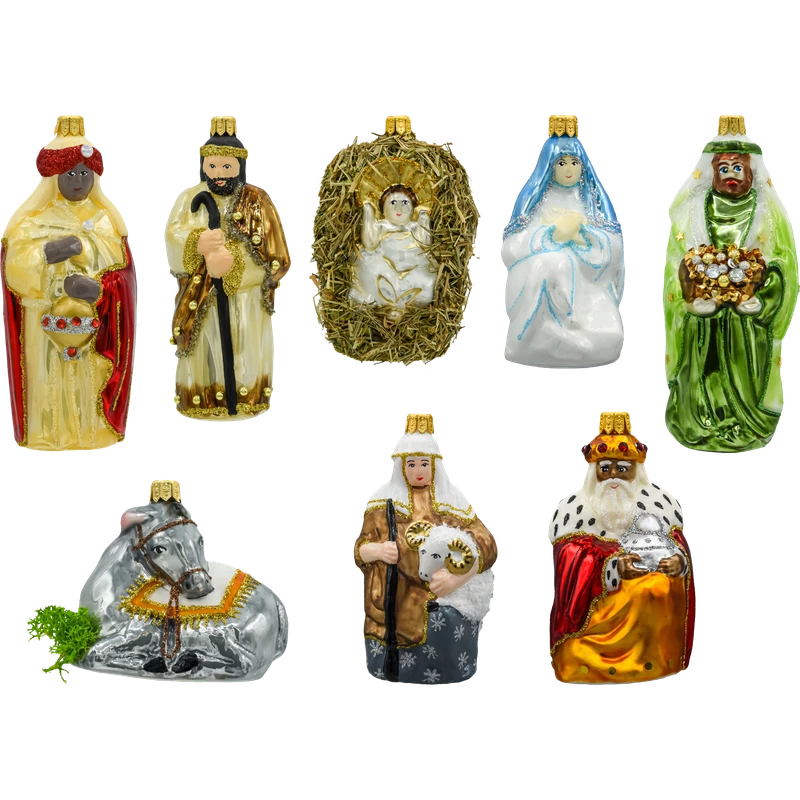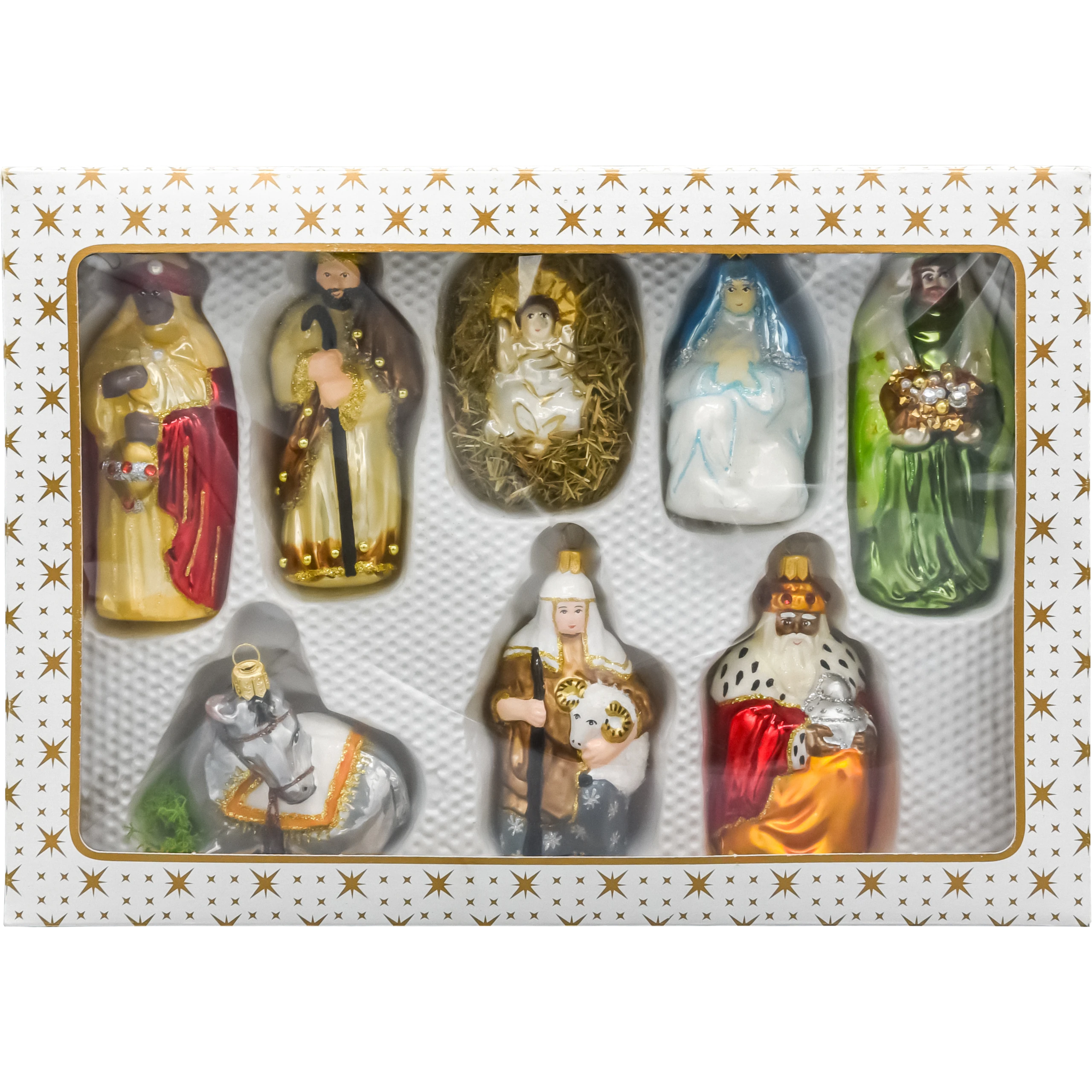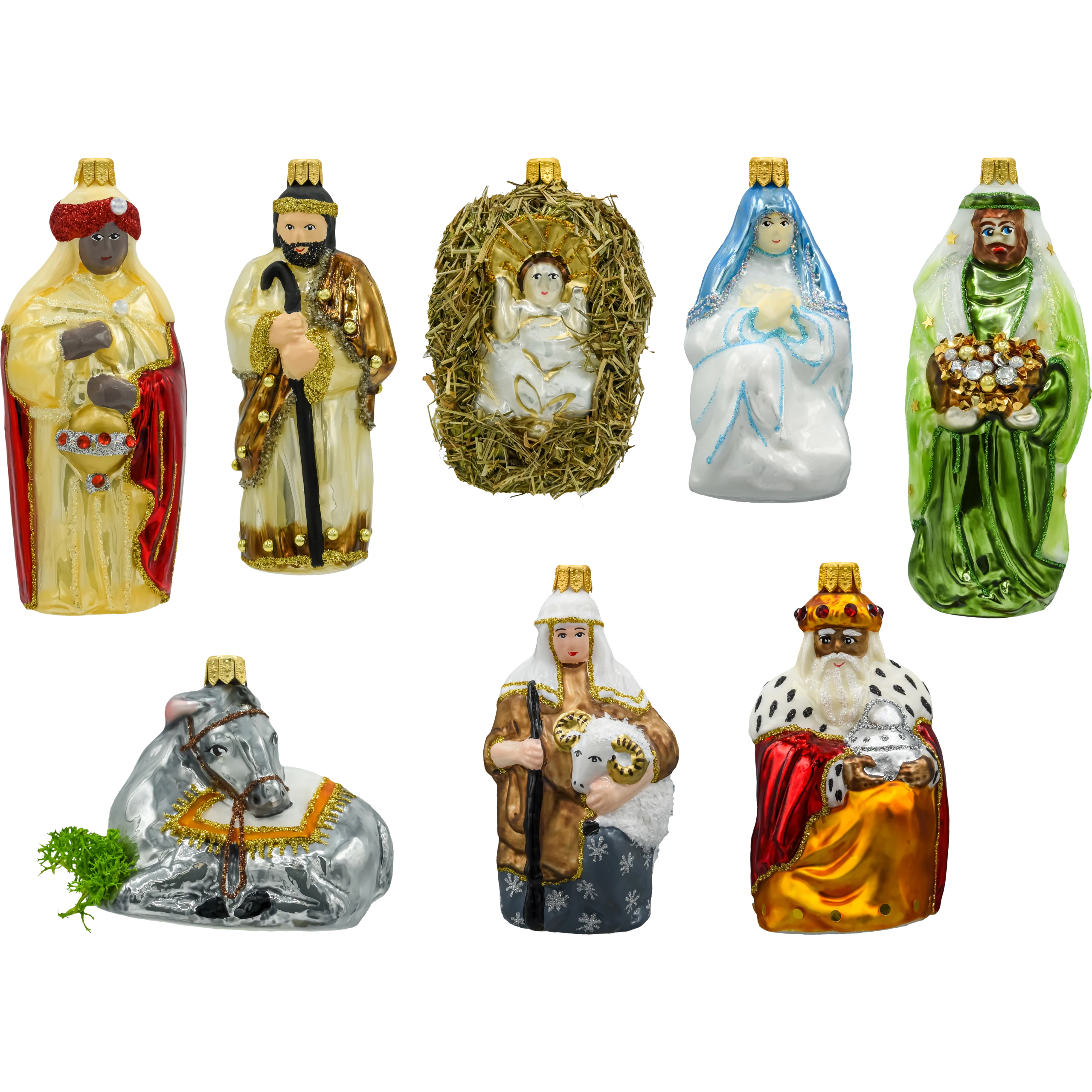 Szklany zestaw bombek – Szopka Bożonarodzeniowa – 8 ręcznie malowanych figurek