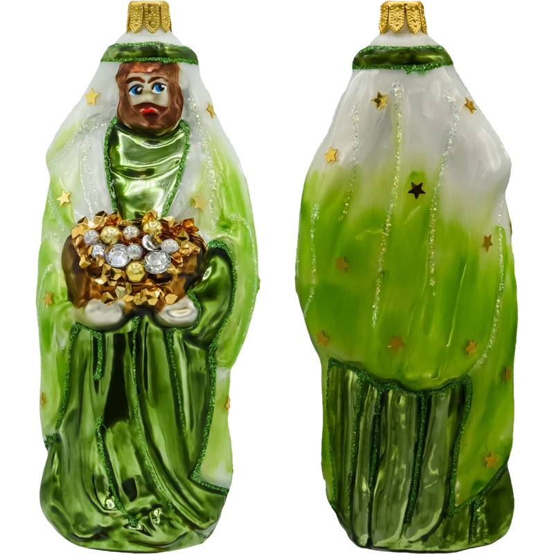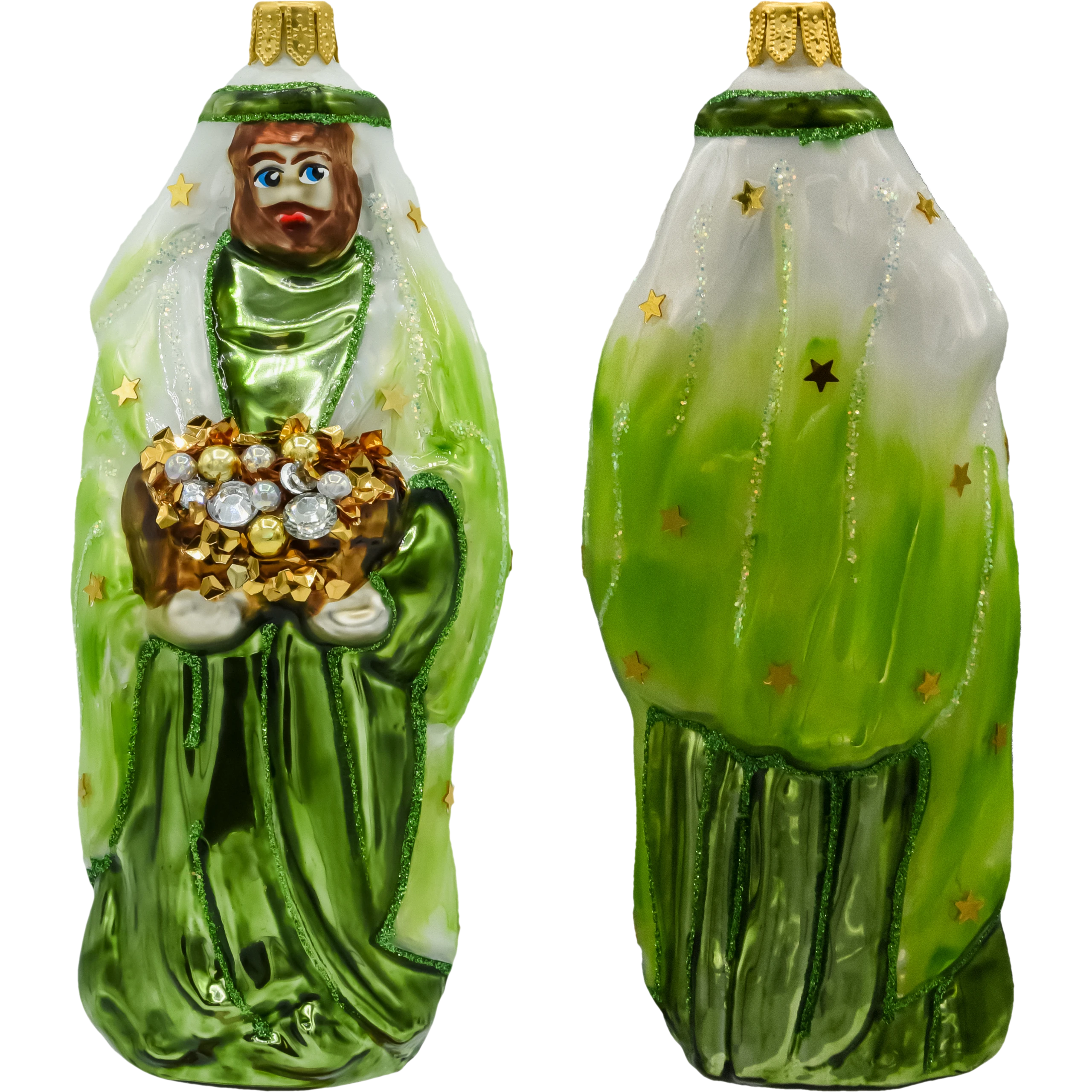 • Baltazar – w zielonej szacie i turbanie, trzyma bogato zdobioną misę ze złotem i perłami. Figurka przyciąga wzrok szmaragdowym kolorem.