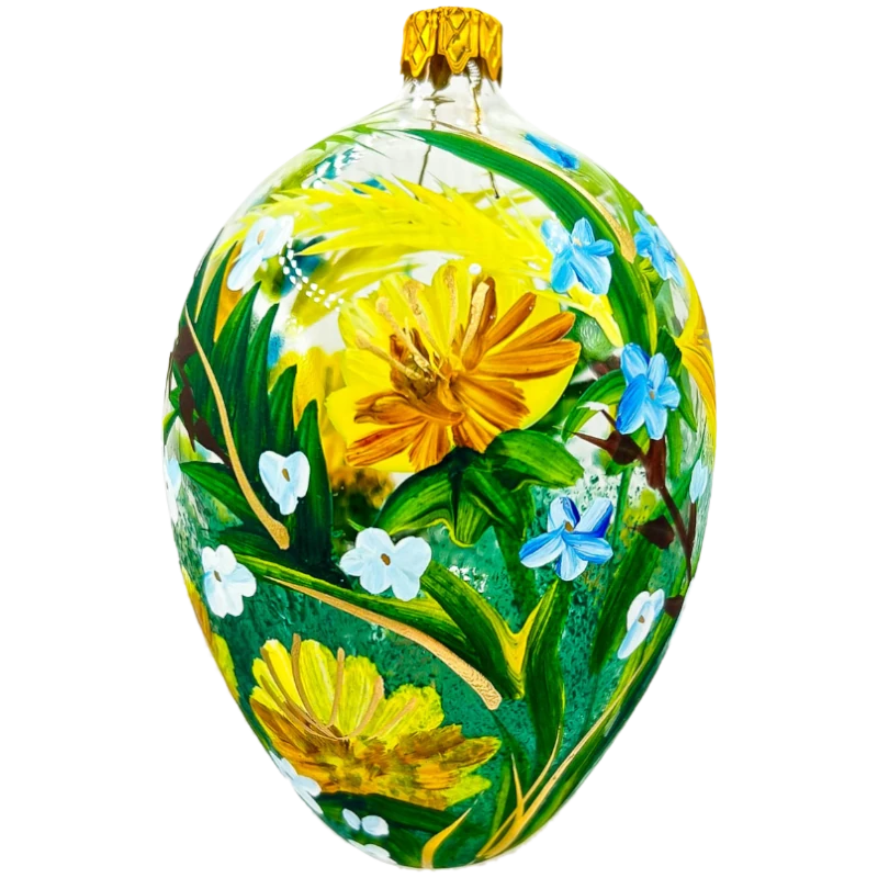 Bombka wielkanocna z kwiatowym motywem. Idealna ozdoba na powitanie wiosny. Szklana baza została w całości pokryta pięknym, ręcznie malowanym obrazem polnych kwiatów.