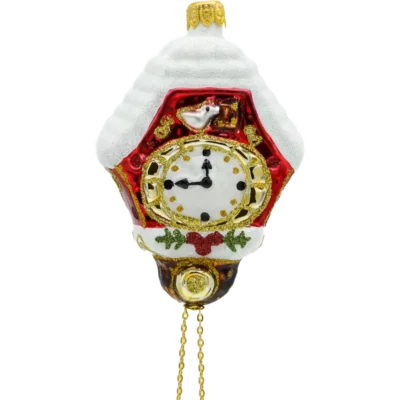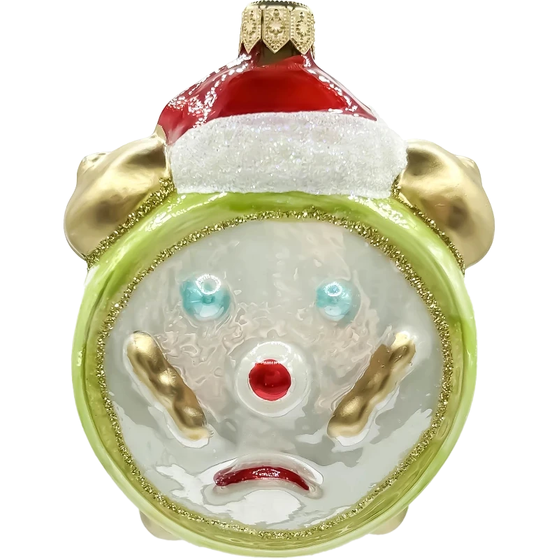 Ozdoba została starannie zaprojektowana, aby przyciągać wzrok, a jej wyjątkowy wygląd z pewnością wywoła uśmiech na twarzach zarówno dorosłych, jak i dzieci. Zegar ozdobiony jest czapką Mikołaja, która podkreśla jego świąteczny charakter. Jego twarz emanuje pozytywną energią dzięki wyrazistym oczom, czerwonym nosie oraz uśmiechniętym ustom, a złote zdobienia dodają elegancji.
