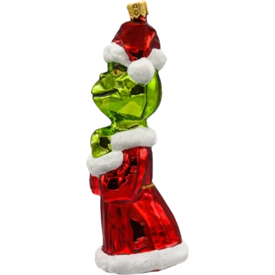 Bombka została wykonana z wysokiej jakości szkła, co gwarantuje jej trwałość i elegancki połysk. Grinch ma wyraziste, złośliwe spojrzenie, które kontrastuje z jego świąteczną, czerwoną czapką pokrytą brokatem. Bombka szklana jest idealna dla tych, którzy lubią przełamywać konwencje i wprowadzać do swoich dekoracji elementy z przymrużeniem oka.